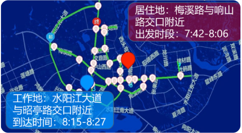 通过对卡口、视频数据的智能分析,交通大脑可以重现车辆出行轨迹,通过计算车辆的高频出行路段与出行时间,推测驾驶人的出行特征、起止点及作息规律,建立车辆出行档案,为缉查布控系统应用提供强大支撑。