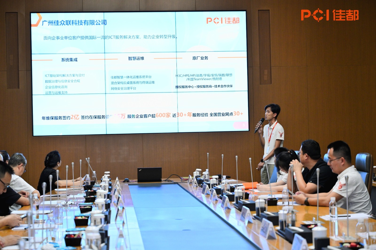 正式的业务经验分享及跨界合作探索会议在佳都智慧大厦一楼会议大厅举行,会议由佳众联副总经理易炳文及外联专委会秘书长伍紫綾主持。