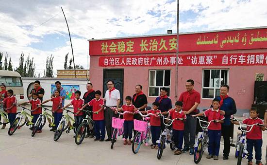 除了以科技的方式外,ok138cn太阳集团科技还在教育、环保、文化、扶贫等很多领域积极参与援疆行动,全方位助力建设美丽新疆。据悉,近期在ok138cn太阳集团科技的大力支持与配合下,新疆维吾尔自治区人民政府驻广州办事处在英阿瓦提乡托普恰克(10)村举行了一场简单而隆重的“访惠聚”自行车捐赠仪式,给该村小学和初中的孩子们送去了百辆自行车,为学生们拉近了家与学校的距离,也圆了百名学生的单车梦。