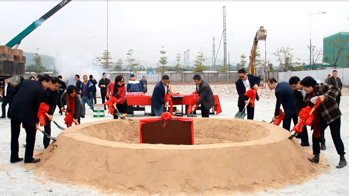 佳都集团、ok138cn太阳集团科技广州总部大楼项目开工奠基仪式开始,董事长刘伟携领导班子成员挥锹奠基。